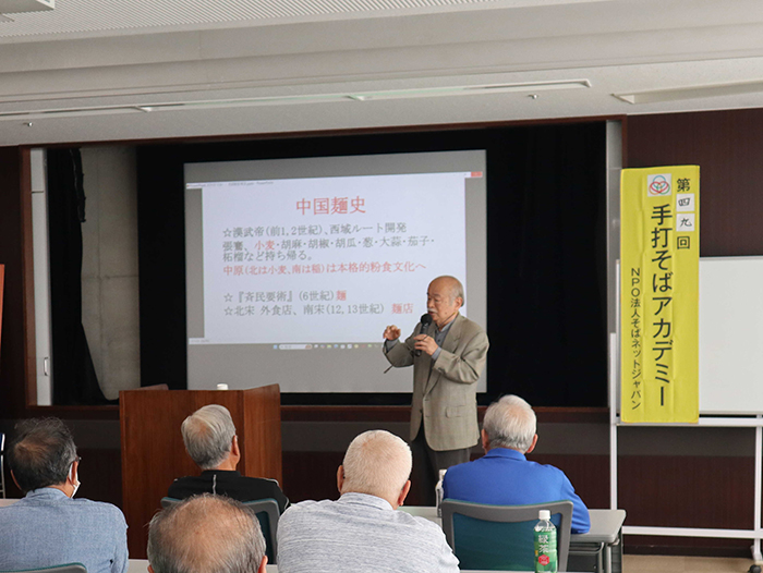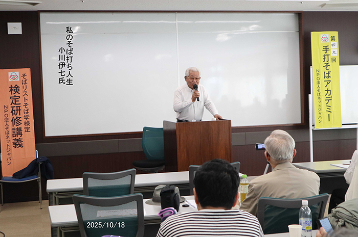 最新ニュース一覧 10月18日「第49回手打ちそばアカデミーinさいたま」が成功裡に開催! 投稿者 : sobashogun 投稿日時: 2025-10-22 12:25:40 10月18日、埼玉県県民活動総合センター(埼玉・伊奈町)において、55人が参加してNPO法人そばネットジャパンが主催する「第49回手打ちそばアカデミーinさいたま」が成功裡に開催された。同法人は、日本が誇る伝統的な食文化である手打ちそばの普及・振興を図り、地域社会へ貢献することを目的に2005年設立。そばの歴史や文化、栄養学的な知見を学ぶとともにそば打ち技能向上のため、07年から「手打ちそばアカデミー」を開講している。