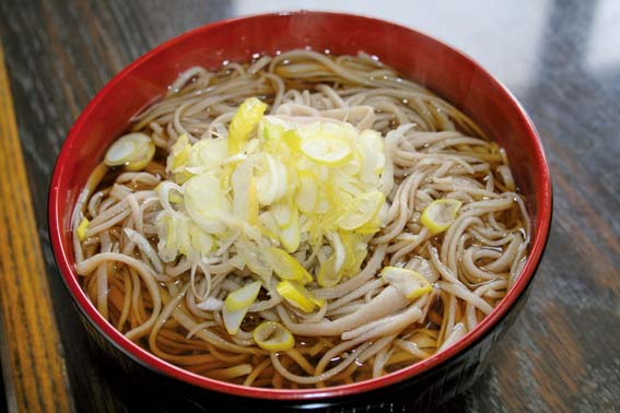 店には「霧下そば記念日」(10月28日)の記念日登録証が掲げられている。霧下そばは、名高い産地で生産されたもの。複雑な地形が生みだす深い霧の中で、極上のそばが育つ。「ざる」と「かけ」(写真)は850円。「天ざる」1,600円、「おろし」1,300円。