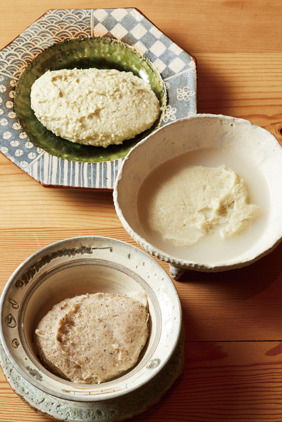 そばがきは、そばに含まれる栄養素をロスすることなく摂取できる健康食。同店では、上から「荒碾」「微碾」(ともに1,000円)、「焼畑手碾」(1,200円)の三種類も提供している。一口にそばがきといっても。産地や挽き方によって香りも風味も全然違うのだ。